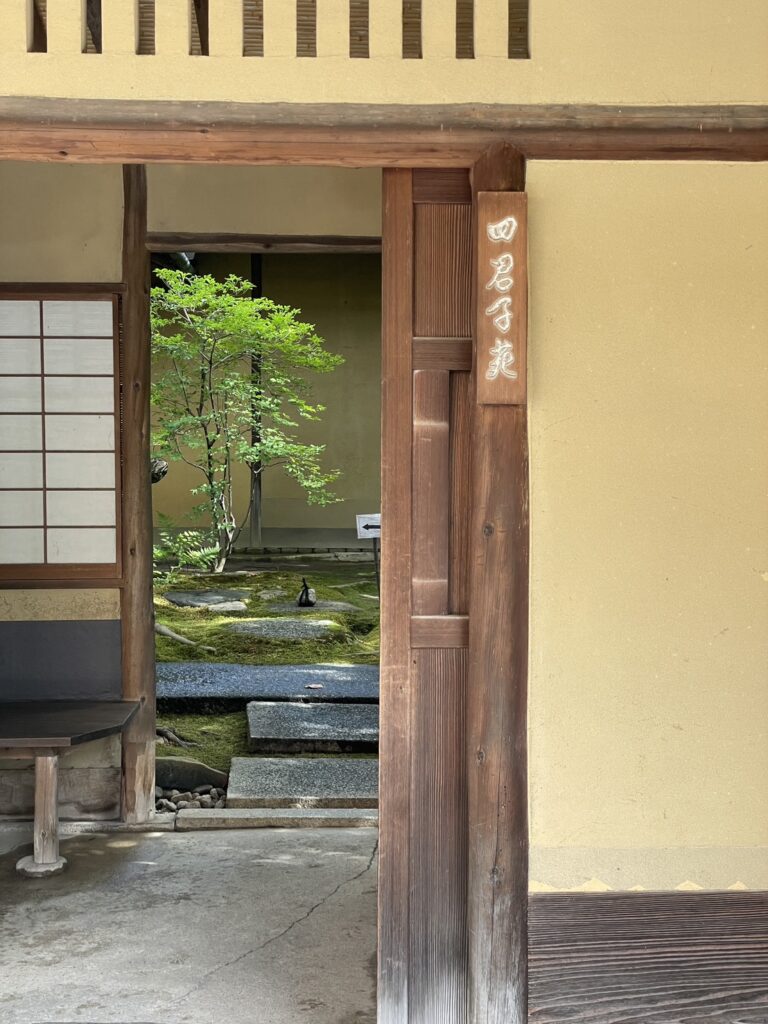 河原町今出川を下って東側の鴨川沿いのほとりの北村美術館に隣に、実業家・茶人の北村謹次郎の旧邸「四君子苑」があります。