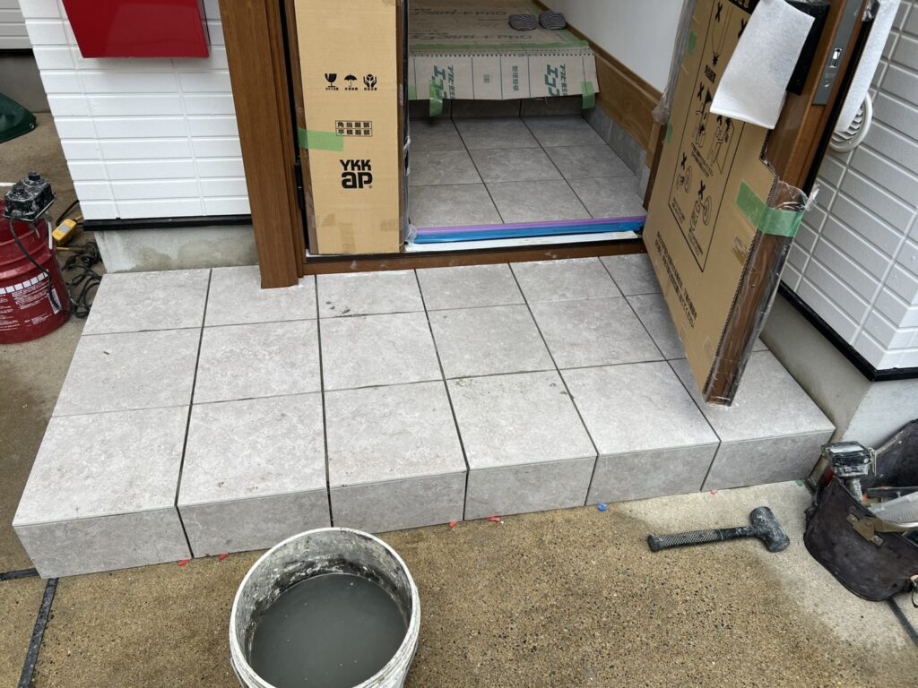 既存の玄関ポーチの上からタイルを施工します。